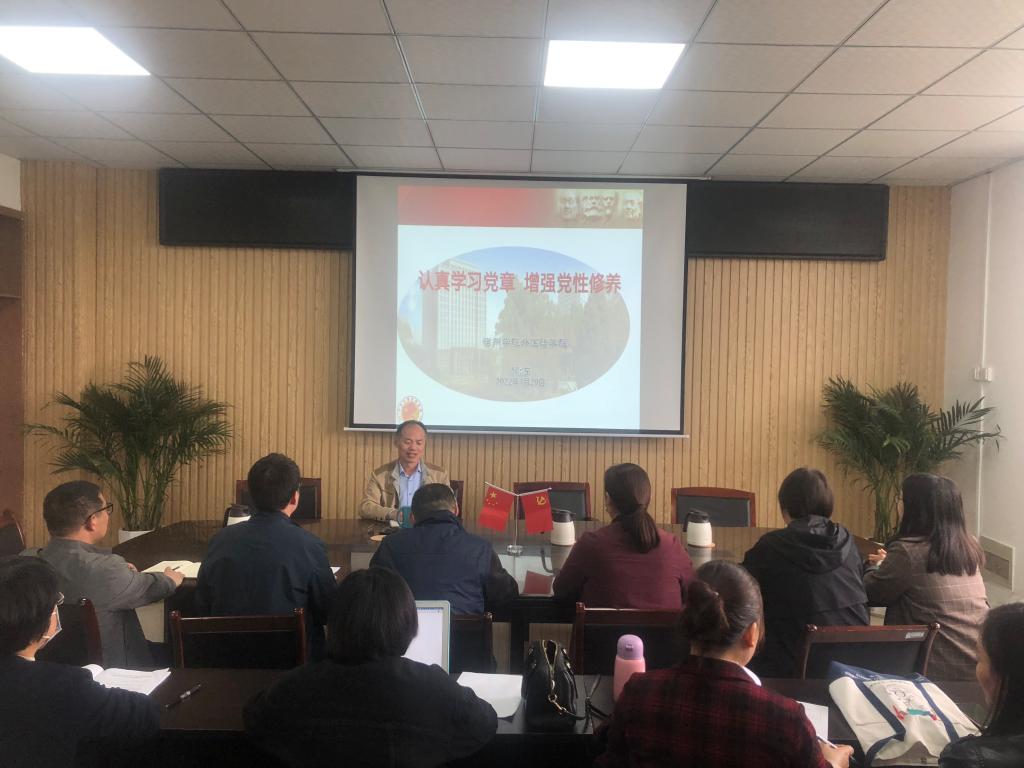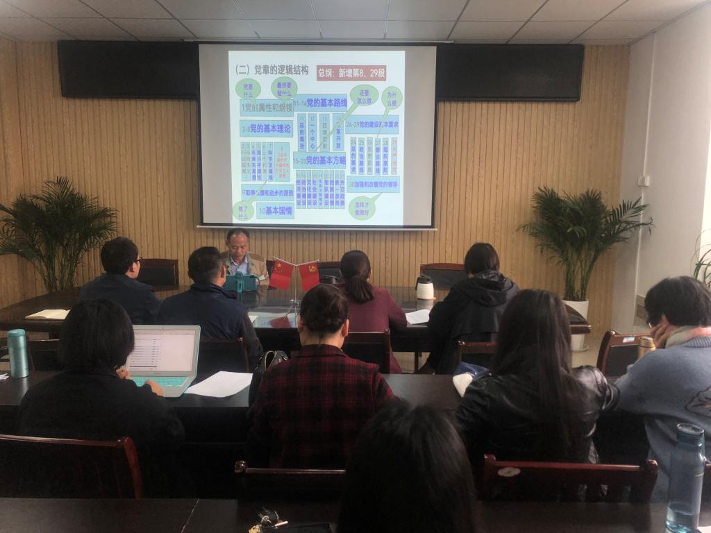 会上,郝景东首先阐述党章的发展历程、地位和作用。他指出:100年来,党章的发展经历了初步创立、走向成熟、曲折艰难和稳步发展四个时期。在这百年历史中,党章是一面旗帜,对内引领方向、凝聚力量,对外展示国家形象;党章是党的根本大法,是全面从严治党的总依据和总遵循,也是全体党员言行的总规矩和总遵循。因此学习贯彻党章是每一个党员最基本的义务,是维护党的团结统一、完成党的各项任务的坚强保证,是巩固党的执政地位、保持党的先进性的必然要求。紧接着郝景东又向支部全体党员介绍了党章的体例结构和主要内容。