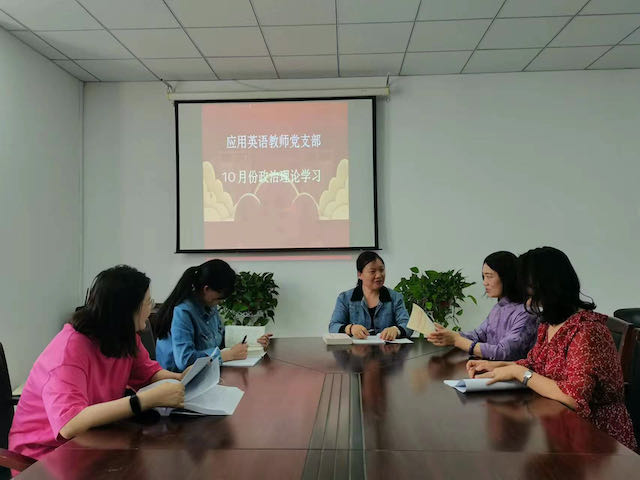 10月25日,外国语学院应用英语教师党支部在逸夫楼A楼A223召开10月份政治理论学习会议,学习人民日报刊发的《总书记引领我们谱写中华民族现代文明新华章》。应用英语教师党支部全体党员参加会议。会议由支部书记顾海燕同志主持。