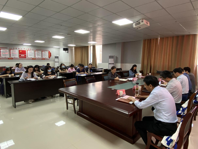 5月31日,外国语学院应用英语教师党支部与商学院电商国贸教研室教师党支部在商学院会议室共同开展主题教育理论学习会,两个支部的全体党员参加。
