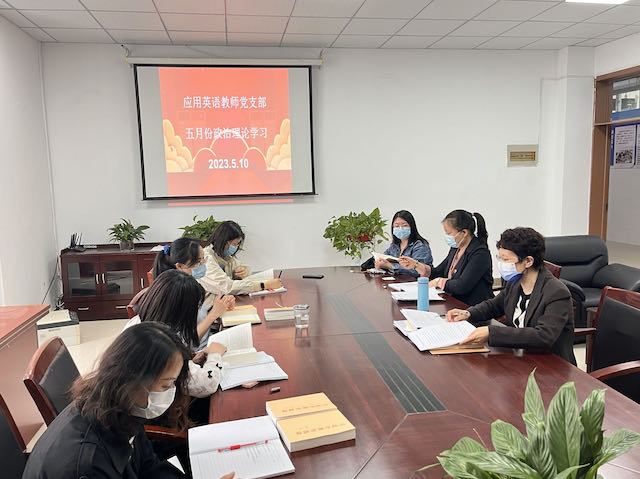 5月10日,外国语学院应用英语教师党支部在逸夫楼A楼A223召开5月份政治理论学习会。会议由应用英语教师党支部书记顾海燕主持,支部成员参加。