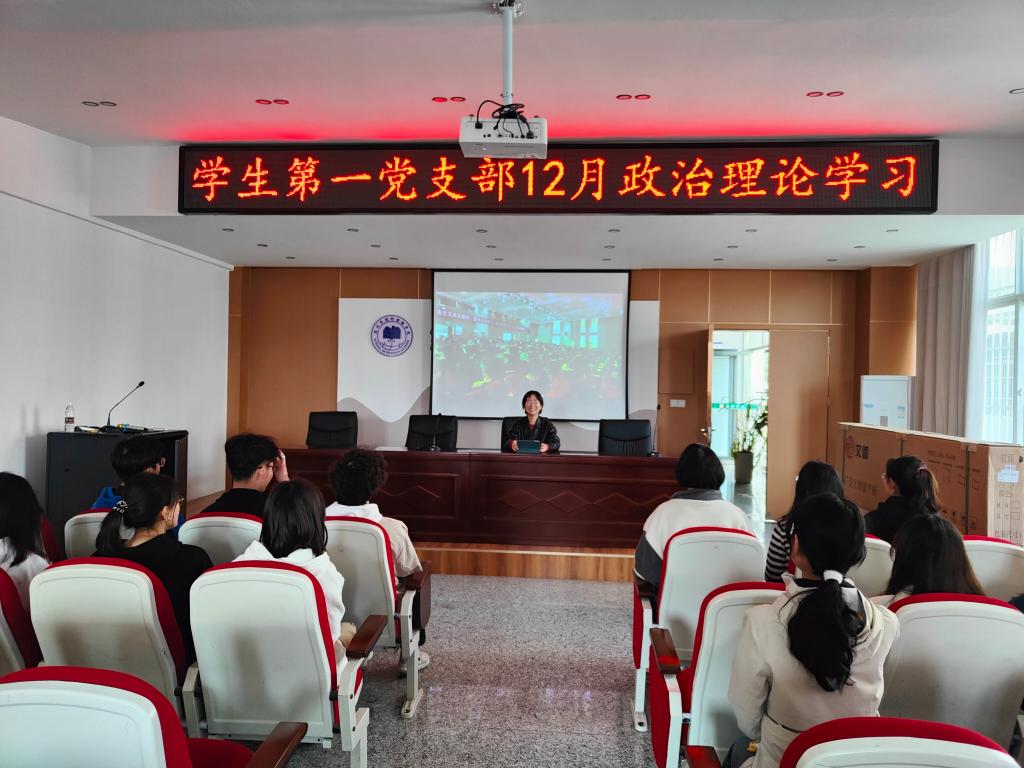 12月8日,外国语学院学生第一党支部在逸夫楼一楼会议室召开政治理论学习会议。会议由支部书记赵婷婷主持,支部成员参加。