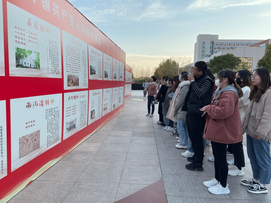为进一步扎实开展好党史学习教育,11月11日下午,我院组织全体师生党员前往图书馆对面广场观看“中国共产党人的精神谱系”展板,体会我党的精神传承。通过参观展板,我们深刻理解到党的精神谱系是光辉伟大的,需要每一名共产党员去铭记、去传承、去弘扬。在共产党的非凡奋斗历程中,一代又一代中国共产党人顽强拼搏、不懈奋斗,涌现了一大批视死如归的革命烈士、一大批顽强奋斗的英雄人物、一大批忘我奉献的先进模范。