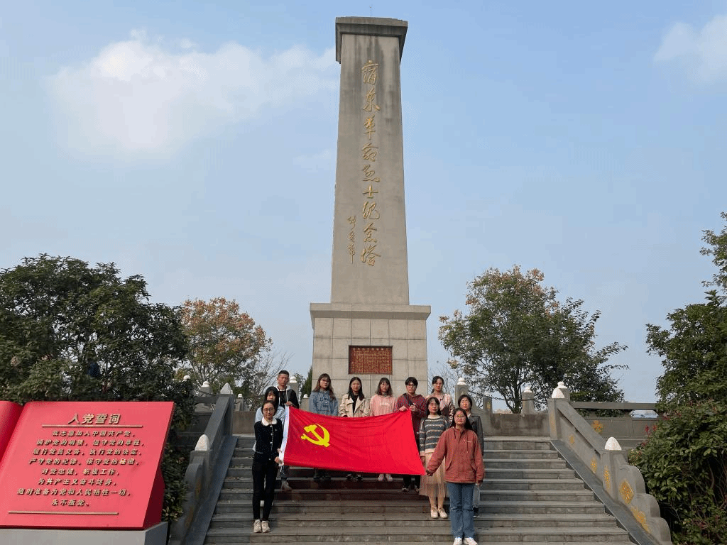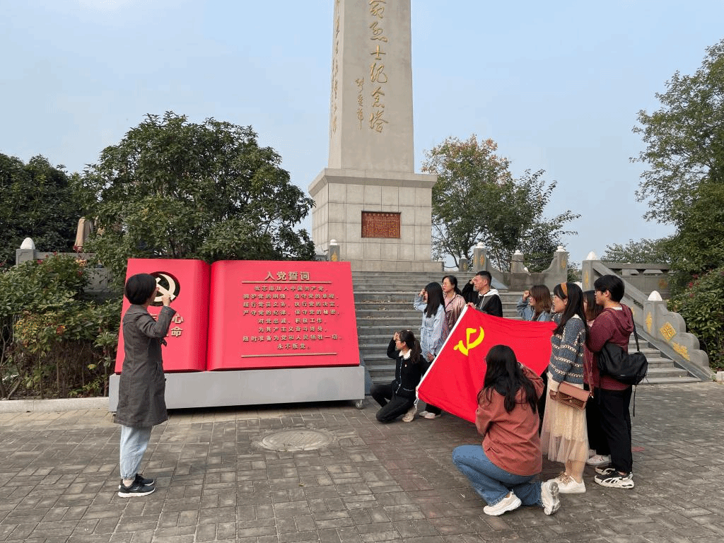 战争虽已走远,红色精神永垂不朽。学生第一支部全体党员在支部书记的带领下,环绕烈士纪念碑,认真聆听为共产主义献身的英雄事迹,面对鲜艳的党旗,重温入党誓词。