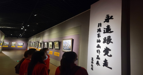 百年征程波澜壮阔,百年初心历久弥坚。之后实践姐妹团进入张振家油画作品展跟着党的历史领略当年的风采,张振家作为一位芜湖本土的“红色”画家,为迎接建党100周年,他从中共一大会址上海出发,直达十九大会址北京,追随足迹,学习党史,并且再现了这些历史场景,实践姐妹团队成员们参观这次画展,张振家的一幅幅画作令人感到身临其境。回顾党的光辉历程,经历无数次的艰难险阻,才有了一叶红船,百年党史的故事。百年奋斗征程中,一批又一批中国共产党用汗水,生命保卫国家,始终与国家同向同行,始终在国家需要的时候挺身而出。历经岁月沉淀,那个红色的时代,那面血染的旗帜永远熠熠生辉。