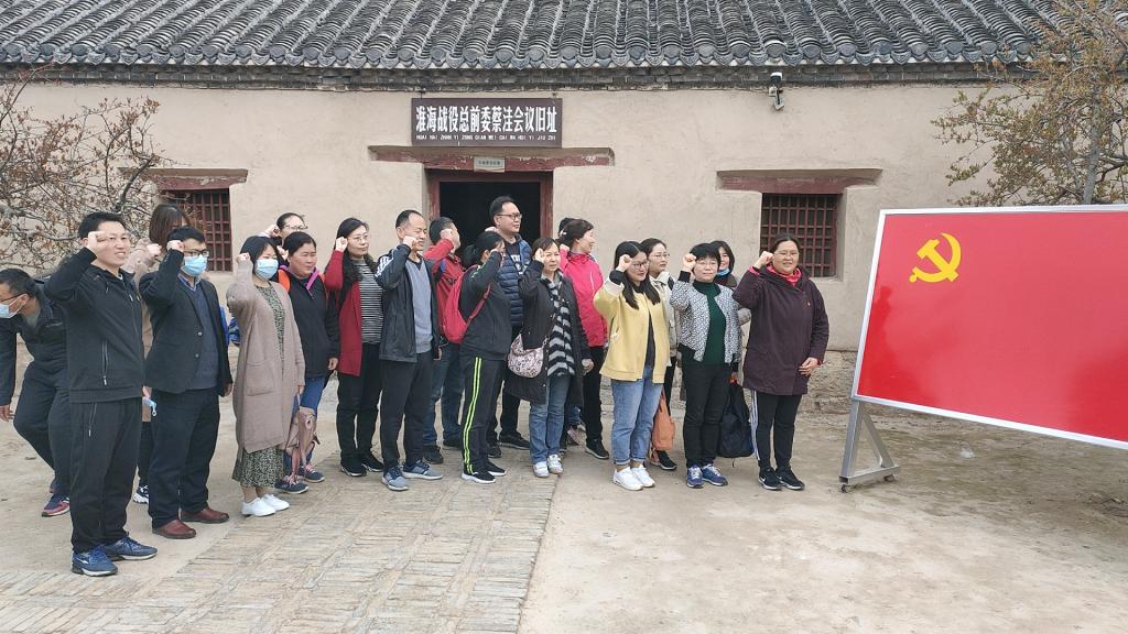 4月11日上午日,外国语学院党委4个党支部的党员,前往蔡洼淮海战役总前委旧址,开展党史学习教育,跟随红色足迹,接受党史教育。