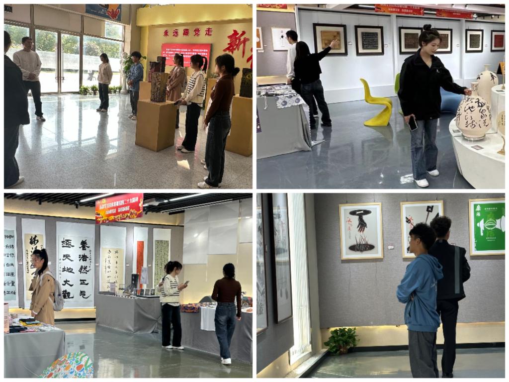 为深入学习贯彻习近平新时代中国特色社会主义思想,贯彻落实习近平总书记关于廉洁文化建设的重要论述,10月11日上午,外国语学院学生第二党支部书记余阳带领党员和入党积极分子前往美术与设计学院一楼展厅参观“传承廉洁文化 谱写发展新篇”第七届校园廉洁文化作品展,接受廉洁文化教育,感受廉洁文化作品的魅力和内涵。