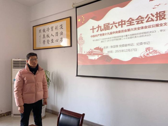 为深入学习十九届六中全会精神,深刻领会党百年奋斗的伟大意义,始终铭记党的百年奋斗伟大成就,外国语学院党委副书记、纪委书记张亚峰,于12月27日在逸夫楼A318会议室开展党课学习活动。