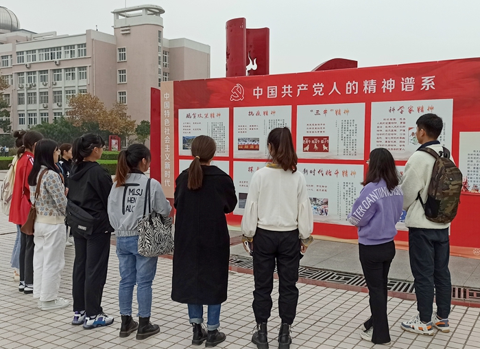 习近平总书记在“七一”重要讲话中首次提出并阐释伟大建党精神,这是中国共产党的精神之源。在波澜壮阔的百年辉煌征程中,一代代共产党人顽强拼搏、不懈奋斗,形成了一系列伟大精神,都是以伟大建党精神为源头。研究阐释伟大建党精神的深刻内涵、形成过程以及历史作用,探讨伟大建党精神和中国共产党人精神谱系之间的逻辑关系,探索弘扬中国共产党伟大建党精神的现实路径,已经成为学习党史的重要内容,为此,宿州学院党委在图书馆前树立专题宣传板。英语专业学生第二党支部于11月5日中午开展专题党日活动参观学习,支部书记余阳带队并作专题发言。