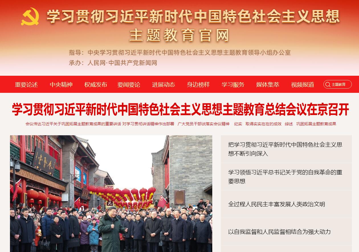 由中央学习贯彻习近平新时代中国特色社会主义思想主题教育领导小组办公室指导,人民网·中国共产党新闻网承办的学习贯彻习近平新时代中国特色社会主义思想主题教育官方网站(http://ztjy.people.cn)近日正式上线,官方微信公众号“学习贯彻习近平新时代中国特色社会主义思想主题教育”同步推出。