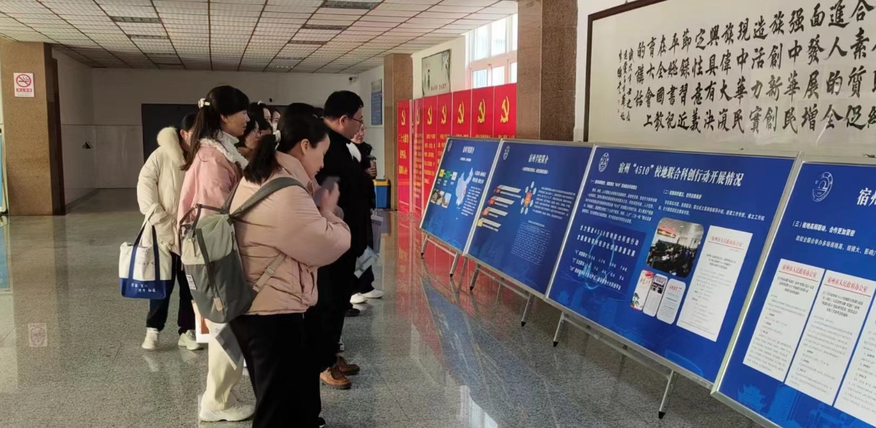 支部党员通过观看展板了解了就业是民生之本,人才是发展之要。“4510”校地联合科创行动搭建起一个让政府、高校和企业合作的平台,旨在实现资源共享和优势互补,促进更多高校毕业生留宿就业,助推宿州经济高质量发展。