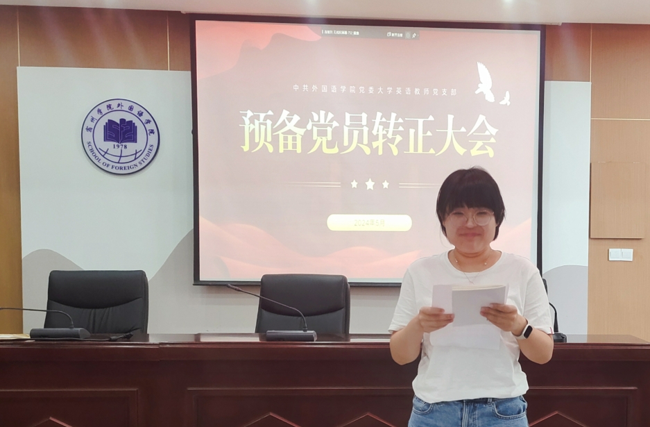5月29日下午,在这个充满活力的日子里,大学英语教师党支部在一楼会议室,隆重召开了2024年第二季度党员大会。本次大会的主要议程是讨论并表决曹飞同志由预备党员转为正式党员的重要事宜。会议由党支部书记宋皓同志主持,19名正式党员参加会议,共同见证这一庄重时刻。