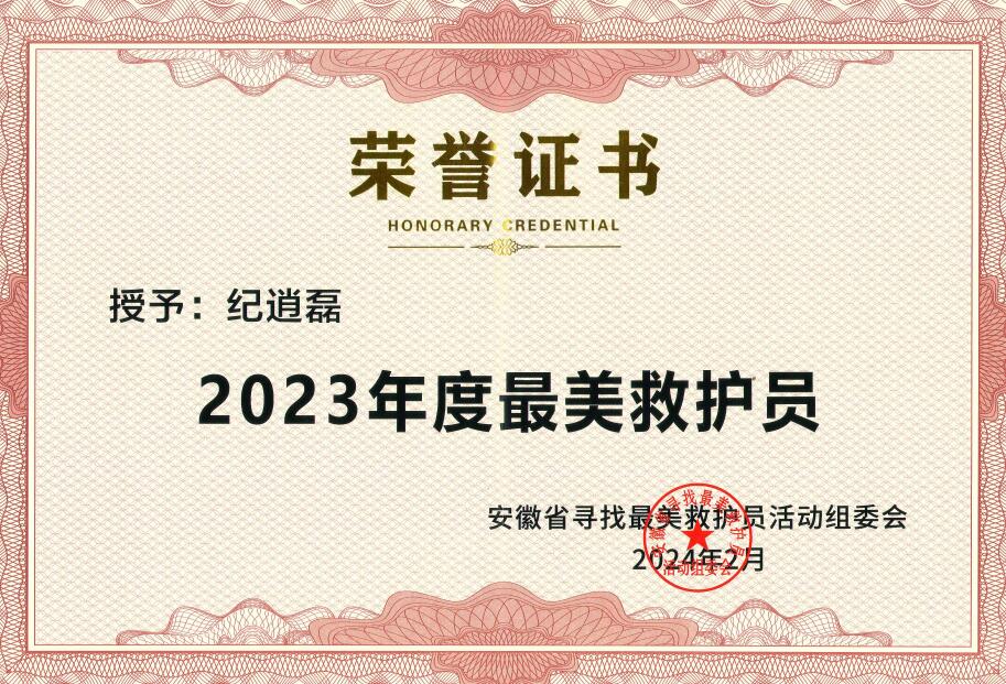 当年纪逍磊先后获得了“阜南好人”,“阜阳好人”,安徽省“年度最美救护员”称号。入选2023-2024年度”全国高校毕业生基层就业卓越奖学(教)金”(已经公示)。