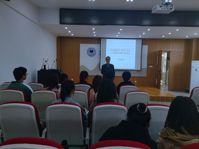 为进一步推动英语(师范)专业内涵式发展,明确人才培养目标,提高专业人才培养质量,4月6日下午,外国语学院在逸夫楼一楼会议室召开了2022版英语(师范)专业人才培养方案论证会。外国语学院英语(师范)专业在校各年级学生代表参加会议,会议由英语专业教研室主任李小鹏主持。