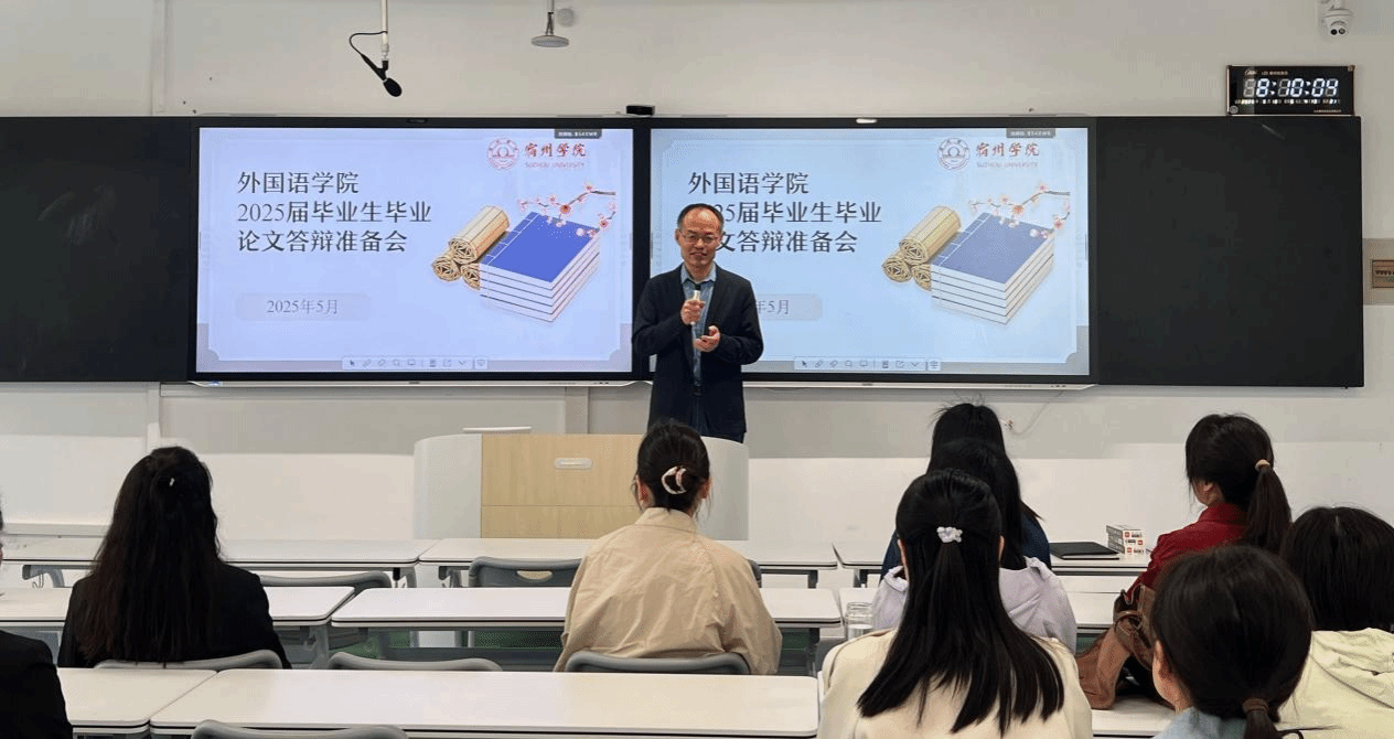 此次毕业论文答辩准备会的召开,进一步明确了工作方向与要求,为外国语学院 2025 届毕业生毕业论文答辩工作的高质量开展奠定了坚实基础。后续,学院将持续加强统筹协调,严格落实各项要求,确保答辩工作平稳有序进行,助力毕业生交出满意答卷。