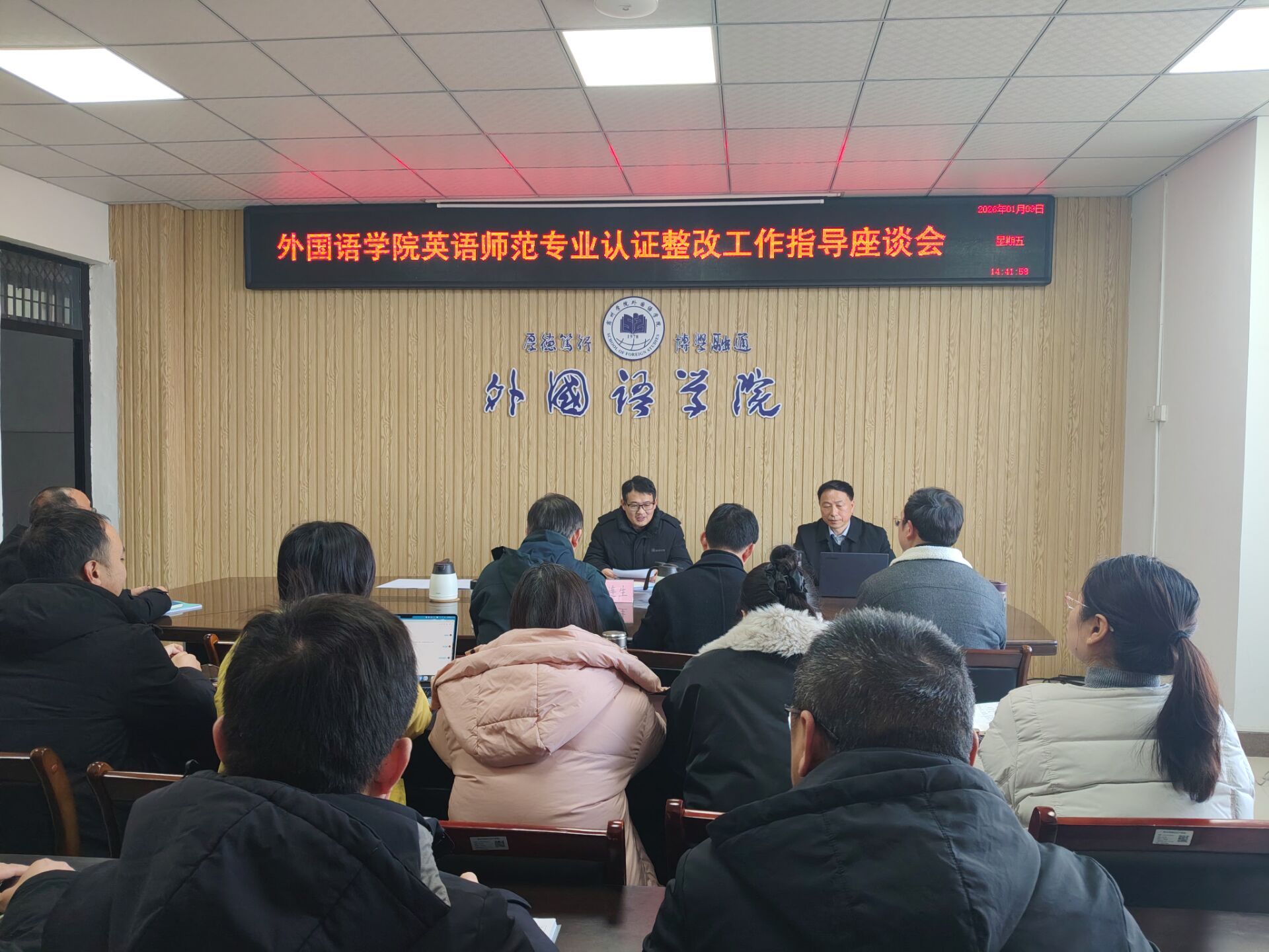 为扎实推进英语(师范)专业认证中期检查工作,精准落实各项整改任务,提升专业建设质量,1月9日,外国语学院在逸夫楼A318会议室召开英语(师范)专业认证整改工作指导座谈会。