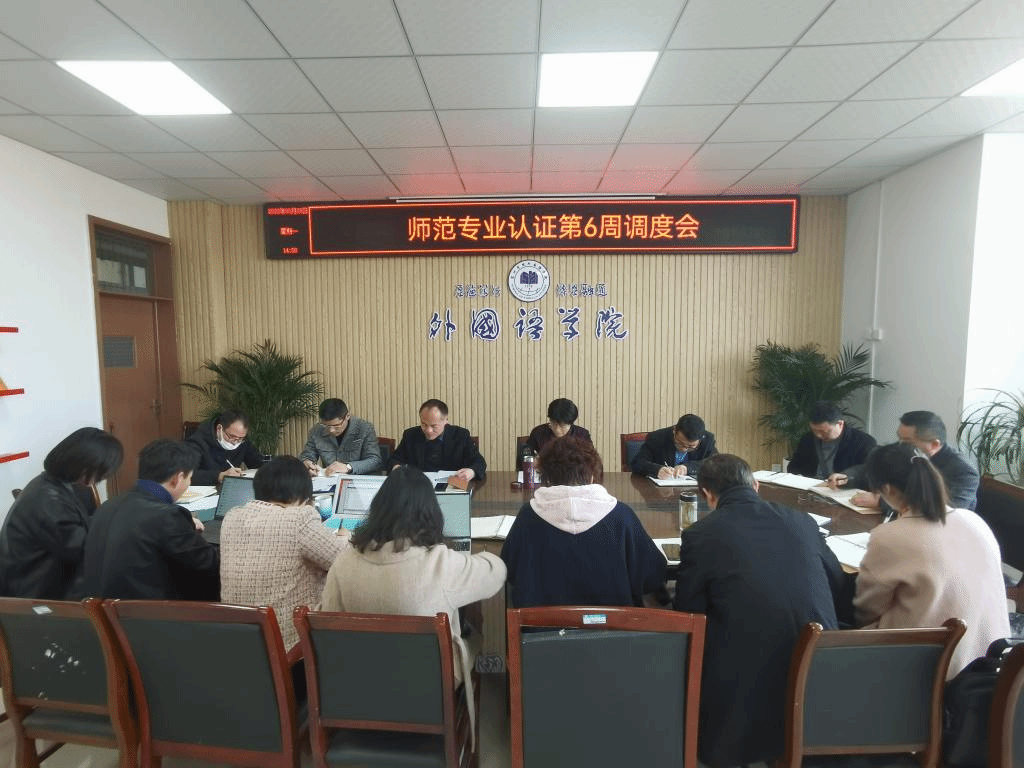 为推进师范专业认证工作,3月28日下午,外国语学院在逸夫楼A318会议室召开师范专业认证第六周调度会。外国语学院师范专业认证工作领导小组与各专项小组成员参加会议,院长张雁凌主持会议。