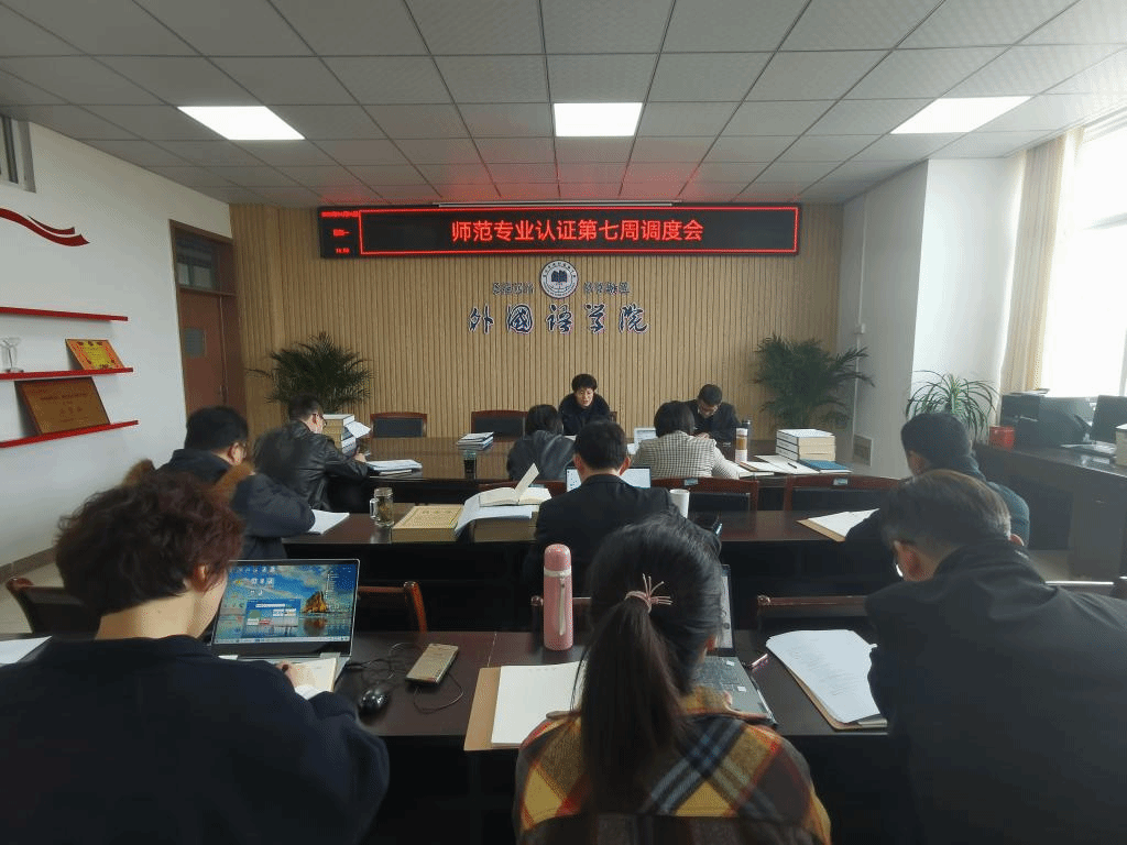 为推进师范专业认证工作,4月4日下午,外国语学院在逸夫楼A318会议室召开师范专业认证第七周调度会。外国语学院师范专业认证工作领导小组与各专项小组成员参加会议,院长张雁凌主持会议。