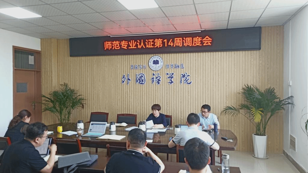 为推进师范专业认证工作,5月23日下午,外国语学院在逸夫楼A318会议室召开师范专业认证第十四周调度会。外国语学院师范专业认证工作领导小组与各专项小组成员参加会议,院长张雁凌主持会议。