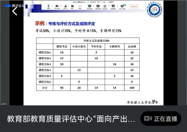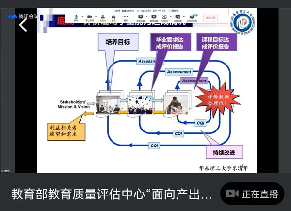 培训会聚焦一线教师教学实践中与面向产出直接相关的课程大纲制定、课程目标评价等基础性工作。培训会重点讲解了课程和教师层面如何落实面向产出的有关要求,介绍如何开展面向产出的课程大纲制定与课程目标评价工作,并分享了面向产出的课程改革经验。教育部评估中心赵自强处长,华东理工大学乐清华教授等人先后为大家作了精彩的报告,参会老师们认真聆听,收获颇丰。