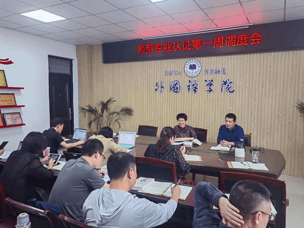 8月29日下午,外国语学院在逸夫楼A318会议室召开新学期师范专业认证第一周调度会。会议由外国语学院院长张雁凌主持,师范专业认证工作领导小组与各专项小组成员参加会议。