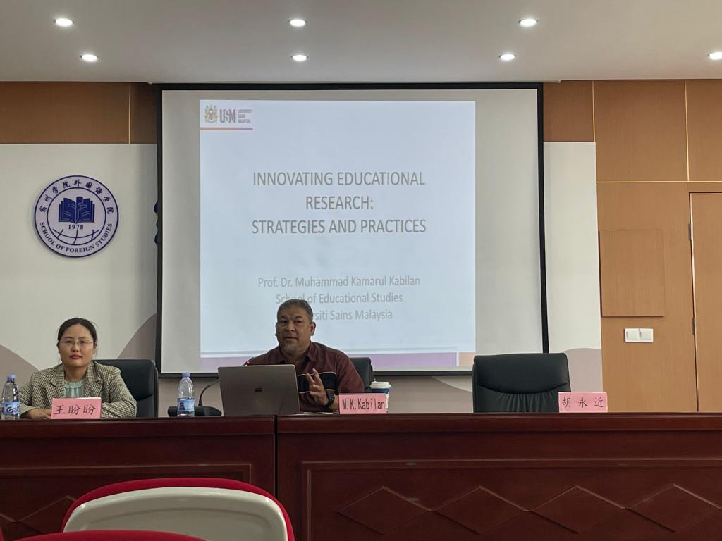2024年4月24日下午14:30,受外国语学院邀请,马来西亚理科大学教育学院博士生导师Kabilan教授主讲了2024年度第二场“云都外语讲坛”之院外专家系列讲座“教育研究的创新性:理论与实践”,讲座由外国语学院副院长胡永近教授主持。