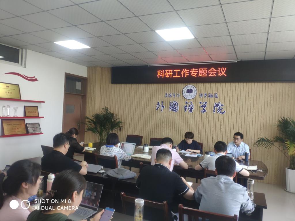 2022年5月23日,外国语学院在逸夫楼A318会议室召开了科研工作专题会议,会议由外国语学院院长张雁凌主持,全体科级干部及教研室主任参加了会议。