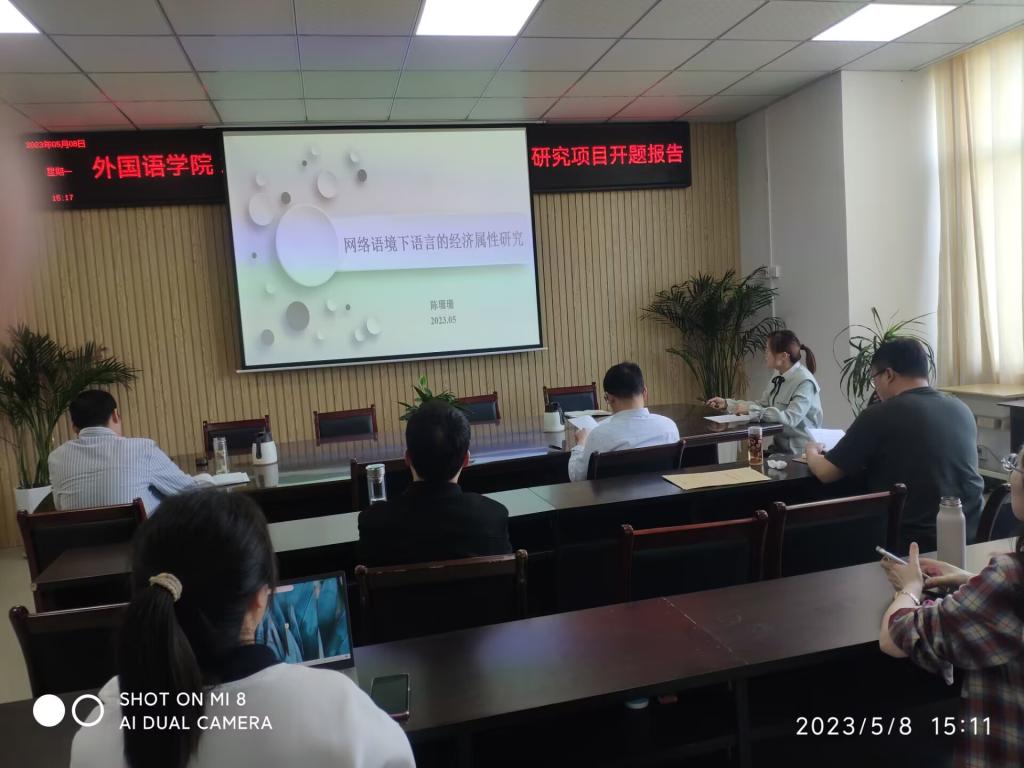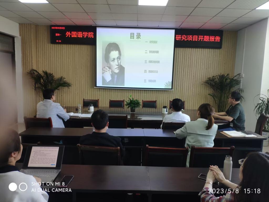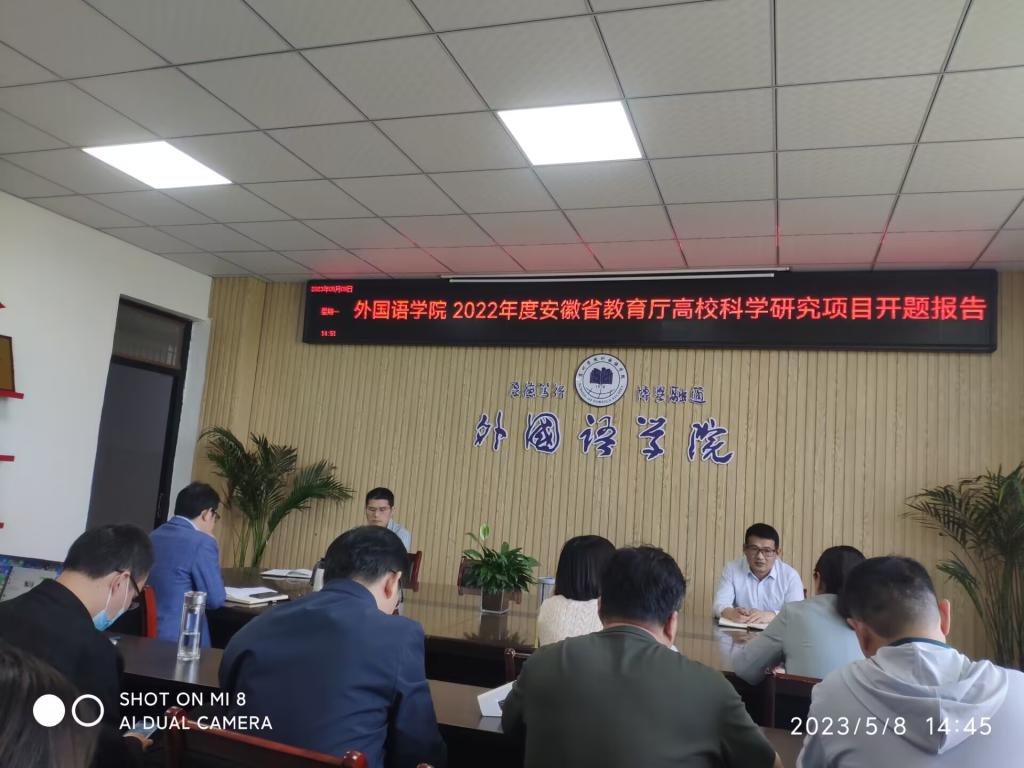 2023年5月8日下午,外国语学院在逸夫楼A318会议室组织了2022年度安徽省教育厅高校科学研究项目开题报告会,报告由外国语学院(科研)副院长胡永近教授主持,外国语学院学术分委会全体成员参加了报告会。