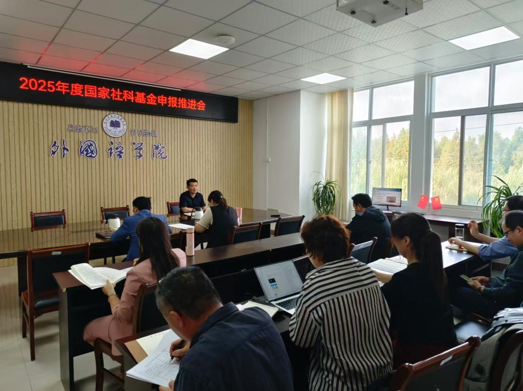 为进一步提高国家社科基金项目申报质量和立项率,2024年10月14日下午,外国语学院科级以上干部、教研室主任和教师代表于逸夫楼A318会议室召开了2025年国家社科基金申报推进会,会议由外国语学院院长胡永近主持。