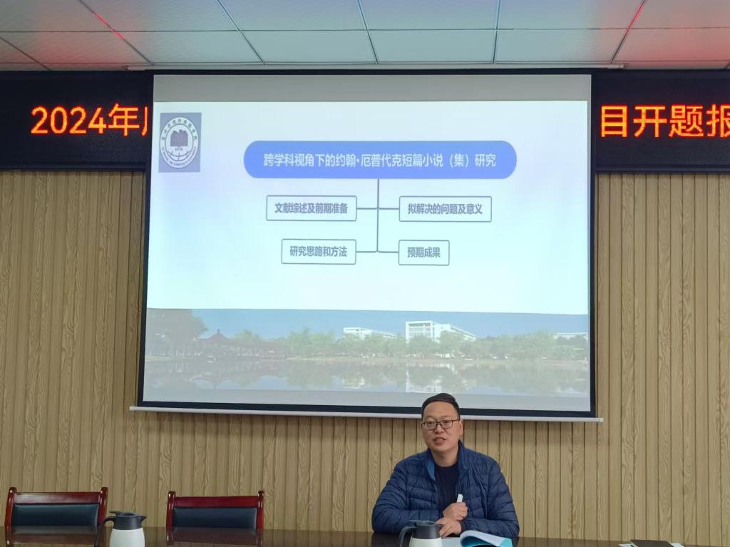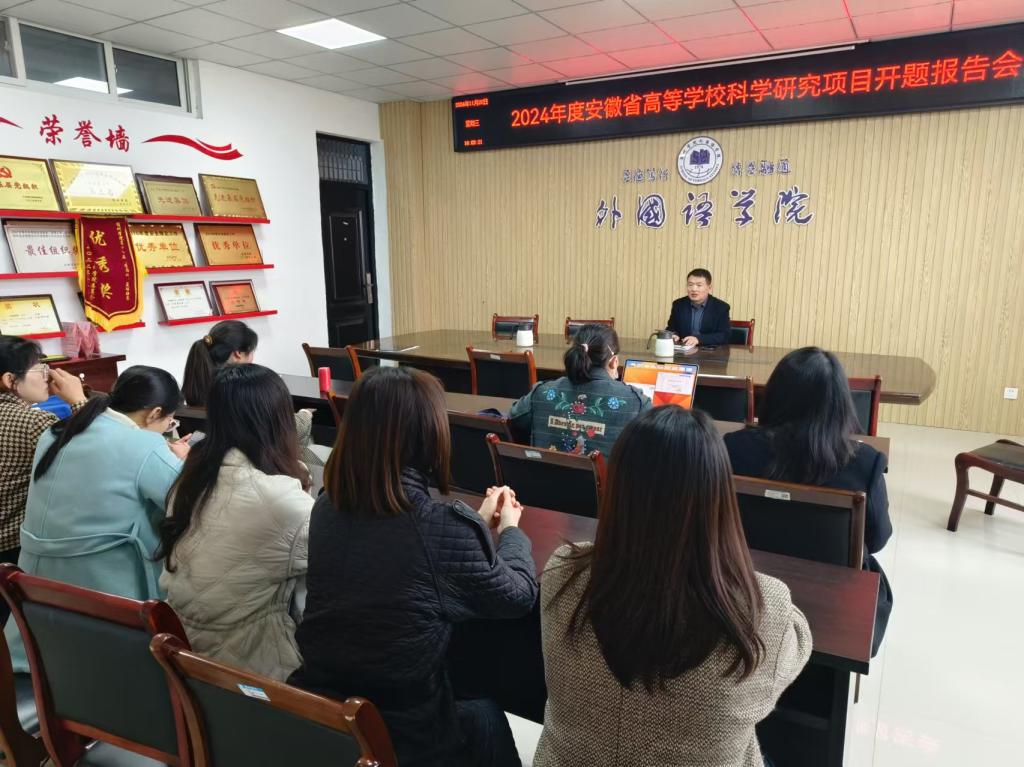 根据《安徽省教育厅关于组织编制2024年度高等学校科研计划的通知》(皖教秘科〔2024〕34号)要求及学校有关工作安排,为进一步推动2024年度安徽省教育厅高校科学研究项目的顺利实施,2024年11月20日下午,外国语学院组织学院学术分委会及高级职称教师代表,在逸夫楼A318会议室进行了2024年度安徽省高等学校科学研究项目的开题报告工作,会议由外国语学院院长胡永近主持。