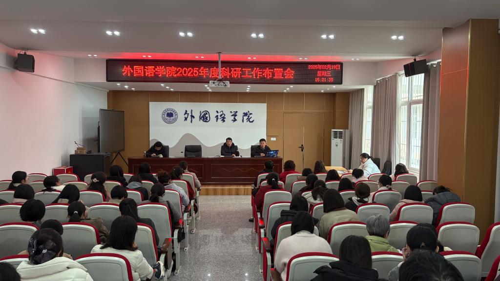 2025年2月19日下午,外国语学院于一楼会议室组织全体教职员工召开了2025年度科研工作布置会,会议由外国语学院院长胡永近主持。