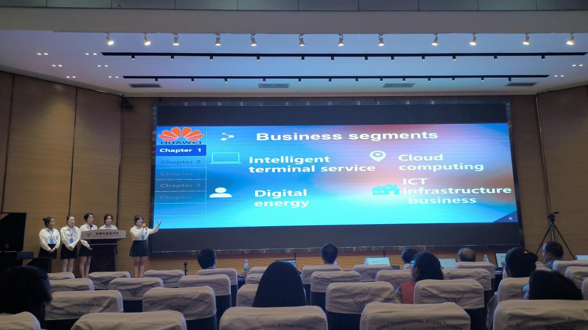 亿学杯“全国商务英语实践技能大赛”由全国大学生创新创业实践联盟和中国国际商会商业行业商会商务英语研究委员会主办,安徽省外国语言文学学会联合主办,福建亿学教育科技集团有限公司协办,安徽外国语学院承办,是一项商务英语专业有较大影响的全国赛事。本次赛事共吸引了安徽财经大学、安庆师范大学、滁州学院等省内十八所院校的三十支队伍参加。比赛以团队形式参赛,分为“云平台测试”和“主题演讲”两部分进行,重点考核学生英语语言技能、国贸实务技能、国际商务沟通能力及跨学科综合知识应用能力。