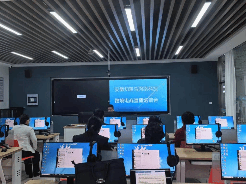 2024 年 3 月 14 日下午,外国语学院应用英语教研室教学能力提升活动之跨境电商直播培训会在逸夫楼B507跨境电商实训室举行。本次培训特邀安徽知耕鸟网络科技徐志浩参加,由商务英语专业教研室主任赵娟主持,应用英语教研室成员参加会议。