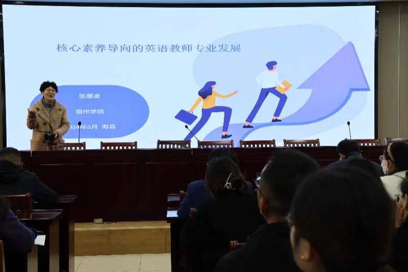 为进一步推进大中小外语教育一体化联合教研,3月12日上午,外国语学院“大中小外语教育一体化虚拟教研室”全体成员赴淮南寿春中学参加教研活动。此次活动以淮南市“学科名人”李中卫工作室2024年工作推进会为契机,淮南市教体局教研室英语教研员黄平,寿春中学党总支书记、校长傅青云,寿县教体局相关股室负责人,寿春中学英语工作室成员和兄弟学校部分教师代表出席本次会议。