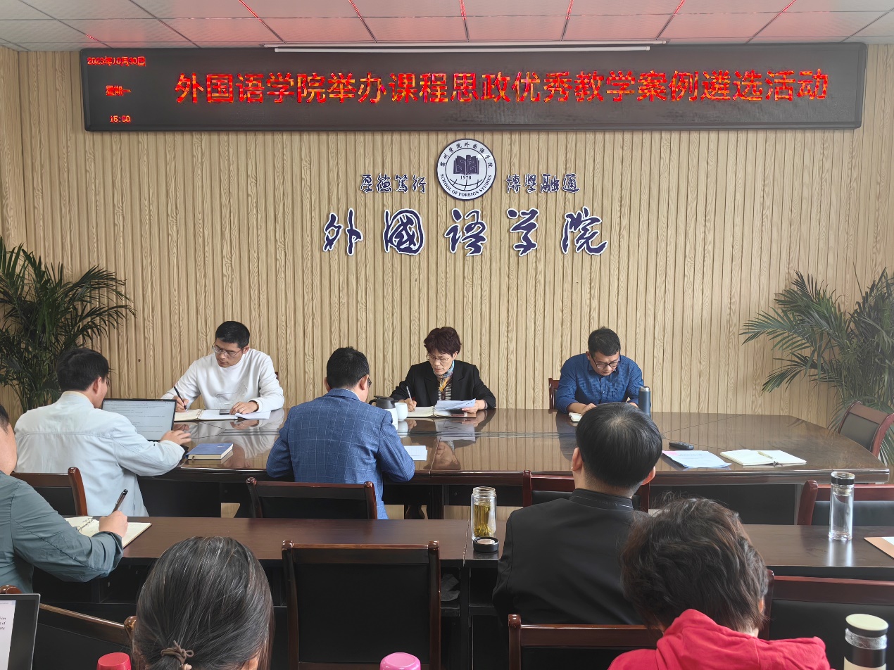 为贯彻学校《关于开展2023年课程思政优秀教学案例遴选的通知》要求,深入推进《宿州学院课程思政教育教学推进年实施方案》《中共宿州学院委员会关于“课程思政”建设的实施意见(试行)》实施,同时按照外国语学院“课堂教学质量提升专项行动”和“教师教学能力提升”活动工作方案要求,于10月30日在逸夫楼318会议室举办了外国语学院2023-2024学年第一学期课程思政优秀教学案例遴选活动。活动由外国语学院院长张雁凌主持,学院课程思政优秀教学案例遴选活动领导小组成员担任评委。