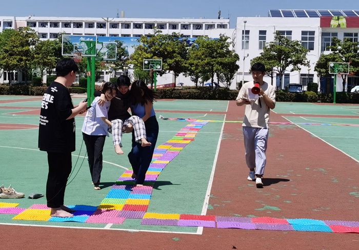 为了进一步落实《教育部办公厅加强学生心理健康管理工作的通知》,加强疫情封控情况下大学生心理健康教育工作,积极引导学生关注心理健康,关注自身心灵成长,学工部开展了以“战疫同行、向阳而生”为主题的第十七届“心理健康月”系列活动;5月6日下午外国语学院承办该系列的首场活动:“团结协作、无惧压力”指压板挑战赛。学工部副部长贾学彬、师生心理健康教育与咨询中心主任詹春燕、外国语学院党委副书记张亚锋和各院心理辅导员出席活动开幕式。
