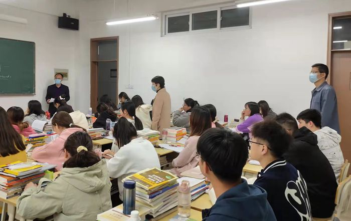 外国语学院学风建设领导小组召开专题会议提出学风是学校治学精神、治学态度和治学原则的综合体现,良好的学风是培养高素质人才的关键。学风是学校的气质和灵魂。4月6日至8日,郝景东、张雁凌、张亚锋、胡永近分别带队连续深入教室和宿舍,对教师到岗、教学准备、课堂管理、学生出勤等情况等进行了全面检查。督察发现实践周期间学院教风、学风总体情况良好,教师能够按时到岗,教案、PPT课件、教材等教学材料比较完备;学生全员到课,教师授课期间精神面貌良好,课堂教学秩序井然。