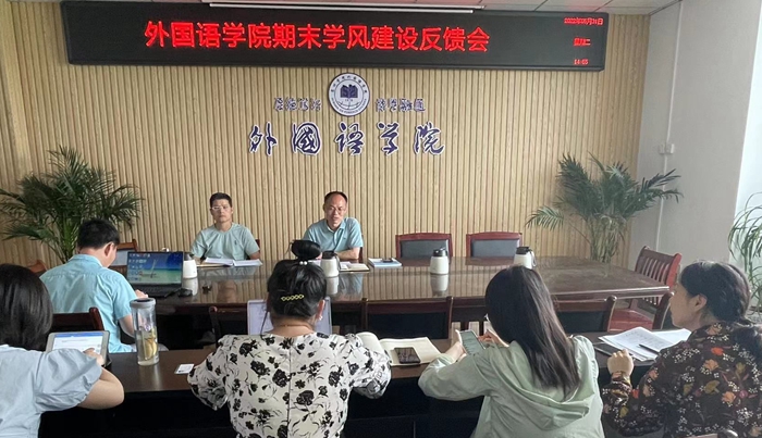 为全面贯彻落实党和国家关于高等教育高质量发展的重要方针政策,推进“三全育人”试点改革高校建设,提高适应新时代发展需要的高素质人才培养质量,着力营造“笃学 笃行 笃信”的学习风气,积极应对学生个性化成长诉求,分类指导服务大学生成人成长成才,促进我校地方应用型高水平大学建设和硕士点立项建设早日实现。外国语学院积极贯彻落实《关于开展2022-2023学年第二学期期末学风建设暨指导服务大学生成长活动通知》精神,于6月12日下午在逸夫楼A318会议室召开学风建设自查总结会。会议由党委副书记张亚锋主持,党委书记郝景东作总结发言。